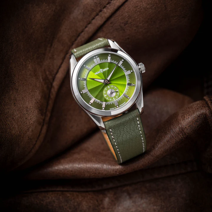 - Elegant presence - With its beautiful green dial with sunburst finish and ultra-thin 8 mm profile, the Heinrich Radiance offers refined dress watch aesthetics with a vibrant character